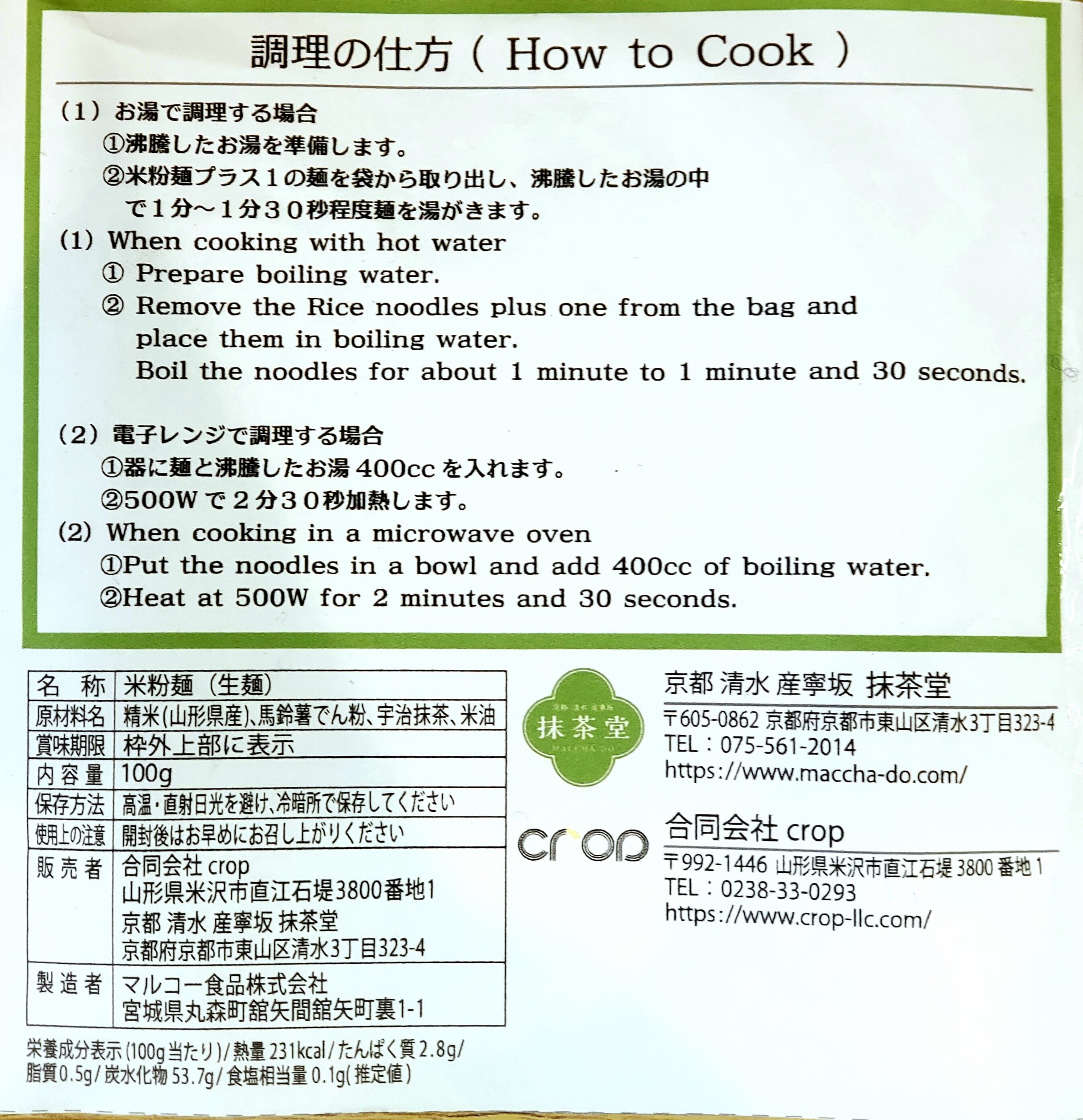 宇治抹茶米粉麺2食セット100g×2 抹茶堂×crop コラボ商品